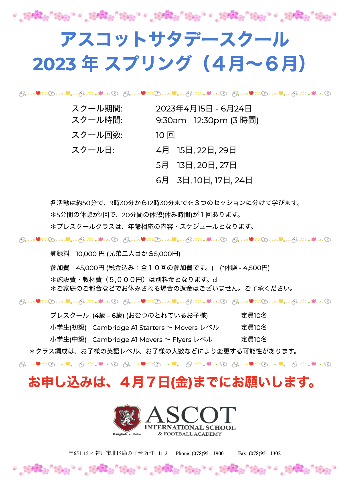 英語のスキルを磨きたい生徒のためにサタデースクールを開講しています。 5歳から12歳までの生徒がおり、初級の生徒から上級の生徒までレベルは様々です。英語の学習としてはもちろん、私たちの学校を見て、アスコットの教育を体験する良い方法でもあります。詳細を知りたい場合は、学校にお問い合わせください。