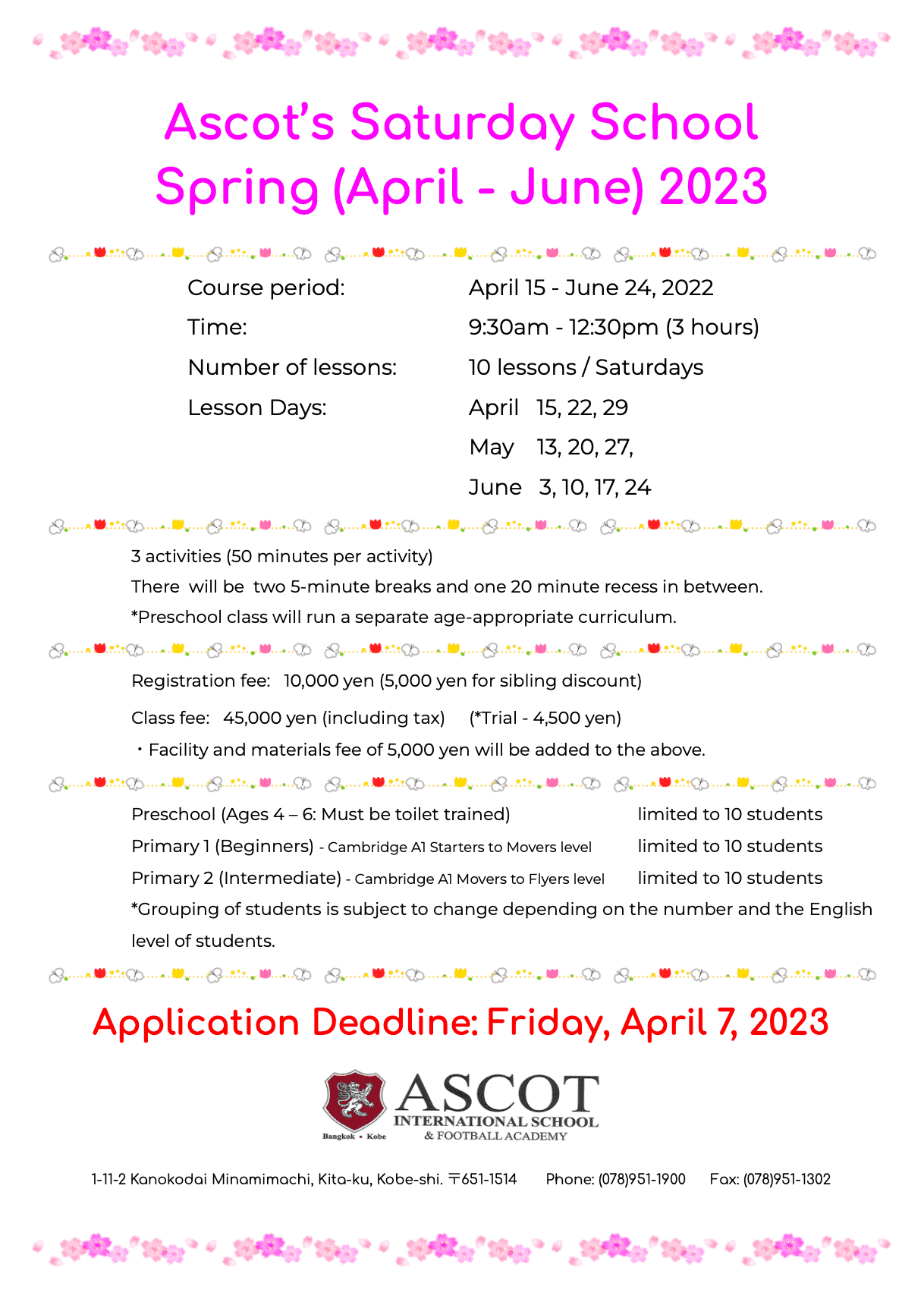 We have a Saturday school open to students that want to work on their English skills. We have ages 5 – 12 and students that are just starting to advanced students. This a good way to see our school and see what Ascot education is about. Contact the schooll if you would like too know more.
